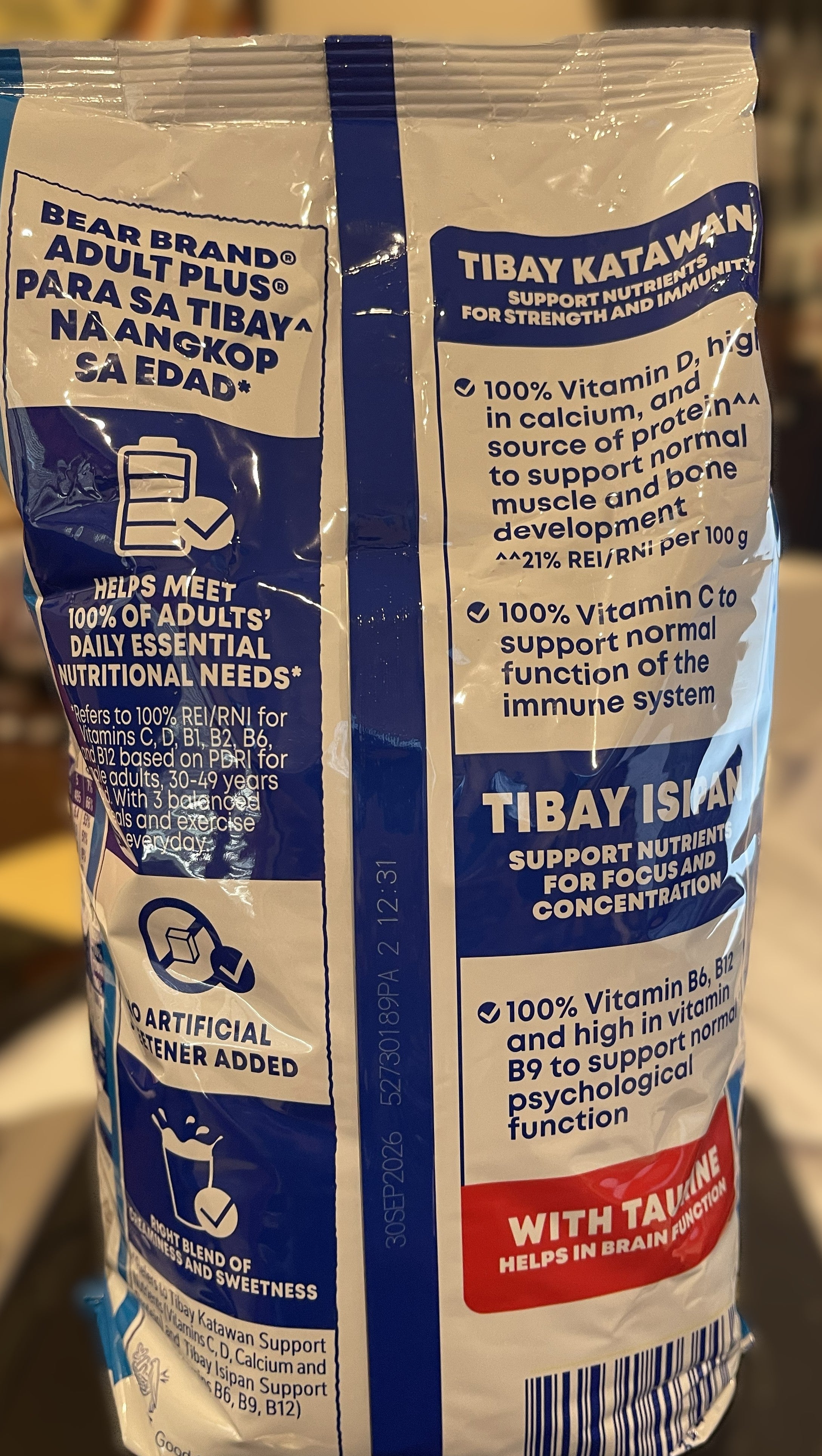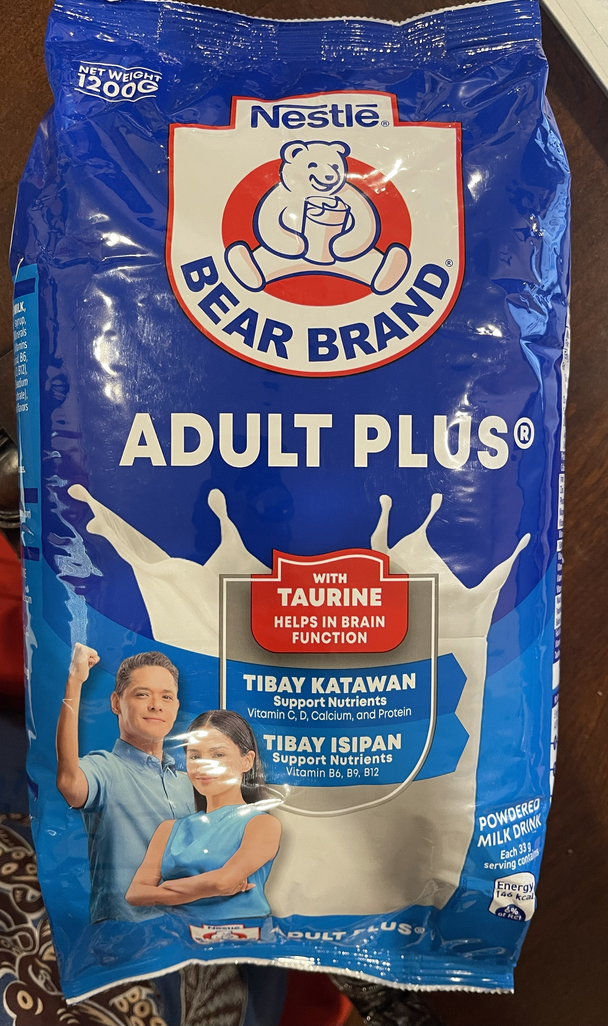Bear Brand Adult Plus with Taurine is a fortified powdered milk drink specially formulated for adults to help fill daily nutrition gaps. Enriched with calcium, vitamin D, B-vitamins, iron, zinc, vitamin C, and added Taurine for mental focus and energy support, this nutritious milk drink supports strong bones, muscles, immunity, and cognitive health. Easy to prepare and shelf-stable, it’s ideal for daily use.